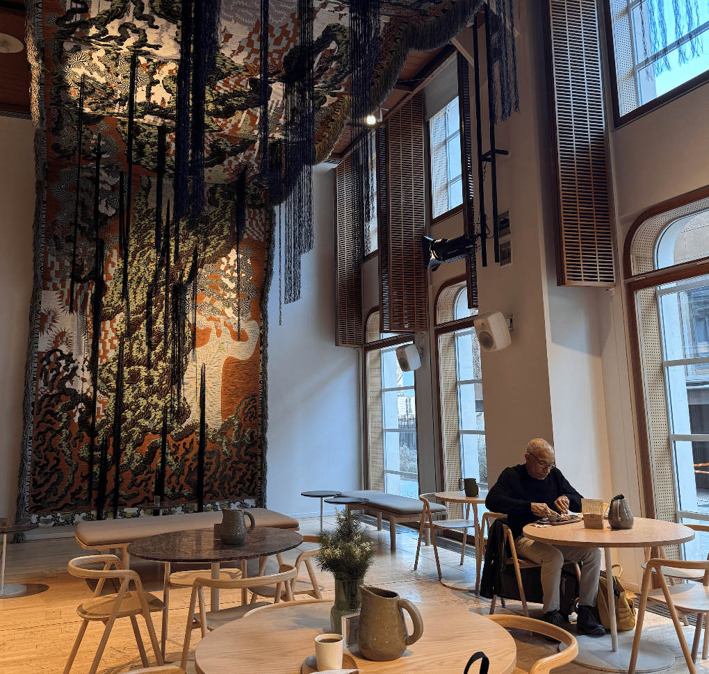 J’avais besoin d’inspiration et d’un lieu joyeux pour travailler sur un gros projet. Le Café de l’Institut finlandais a été un excellent choix : playlist années 70 pointue, café filtre, belle luminosité et équipe agréable. En bonus, l’installation artistique au plafond change à chaque saison.