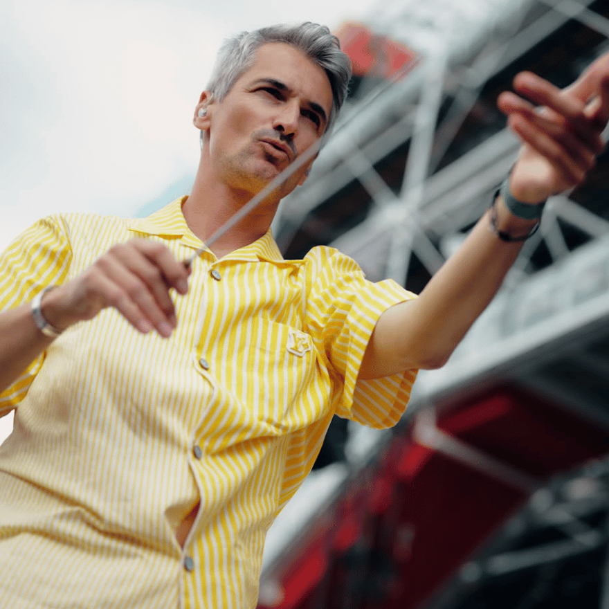 Le jour J, on jouait en cercle, sans pupitres, moi au centre, dirigeant à 360 degrés. Ma plus grande crainte était en réalité de trébucher, en direct, devant 300 millions de téléspectateurs. En sortant de scène, on a regardé le show en replay, l’émotion était palpable. C'est visible dans le making-of Alpes 2030.